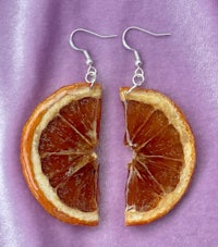 Whole slices of exotic Starfruit, Hand dried and preserved in Resin. They look so juicy and cute, like stained glass in the sun. Set in Sterling Silver marquise drop hypoallergenic findings.
