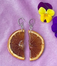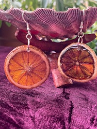 Whole slices of exotic Starfruit, Hand dried and preserved in Resin. They look so juicy and cute, like stained glass in the sun. Set in Silver hypoallergenic findings.