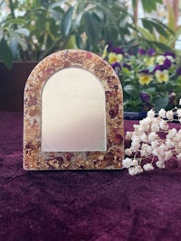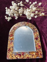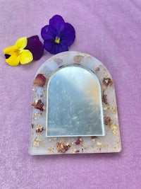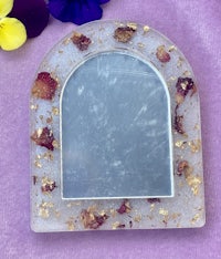 Cute Lil’ arch compact mirror for your purse or desk. Filled with Real Rose petals and gold leaf. 1st variation has more of both and the 2nd one has less.