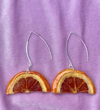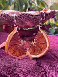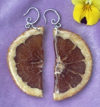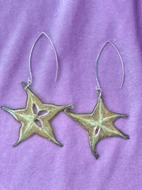 Whole slices of exotic Starfruit, Hand dried and preserved in Resin. They look so juicy and cute, like stained glass in the sun. Set in Sterling Silver marquise drop hypoallergenic findings.