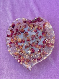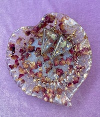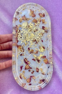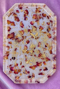 Non-toxic Resin, mica powders, gold leaf, rose petals and love.