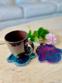 Hand made with Epoxy Resin, alcohol inks, love and charged with Reiki.