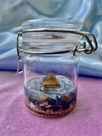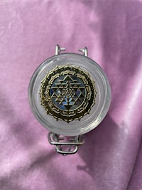 This little jar is topped with an Opalite Pyramid and a Gold Sri Yantra decal on the lid.