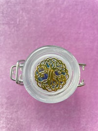 This little jar is topped with a Lapis Lazuli Mushroom and a Gold Tree of Life decal